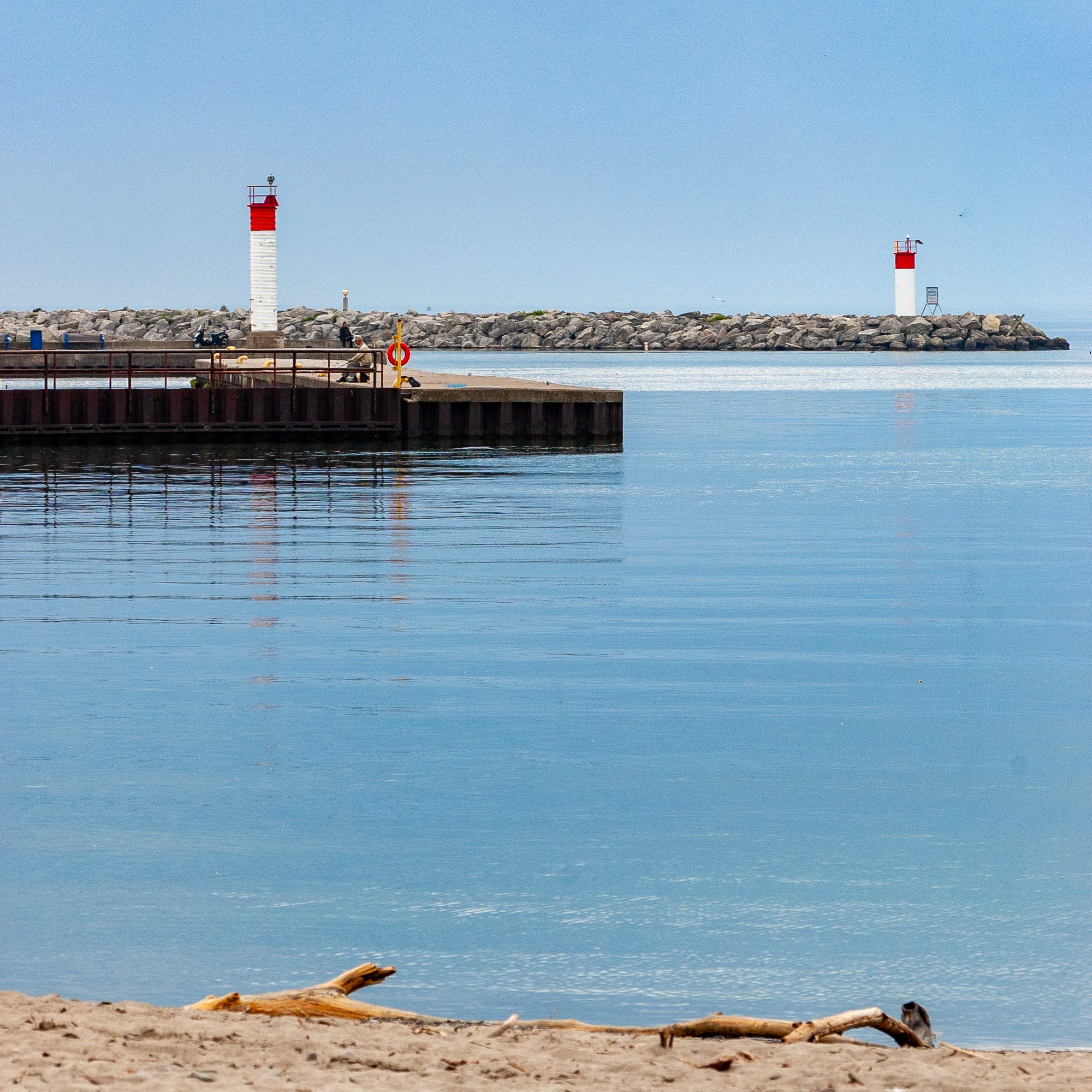 This picture is from my old Nikon D40, which has a 6 MP sensor. From May 2009 photowalk on Bronte Beach. The old CCD sensor really captured the colors and brought back so many memories. Seeing the fisherman on the wharf, with the entrance lighthouses in the background, really gives a sense of history. How many fish have been caught on a sunny Sunday in May?