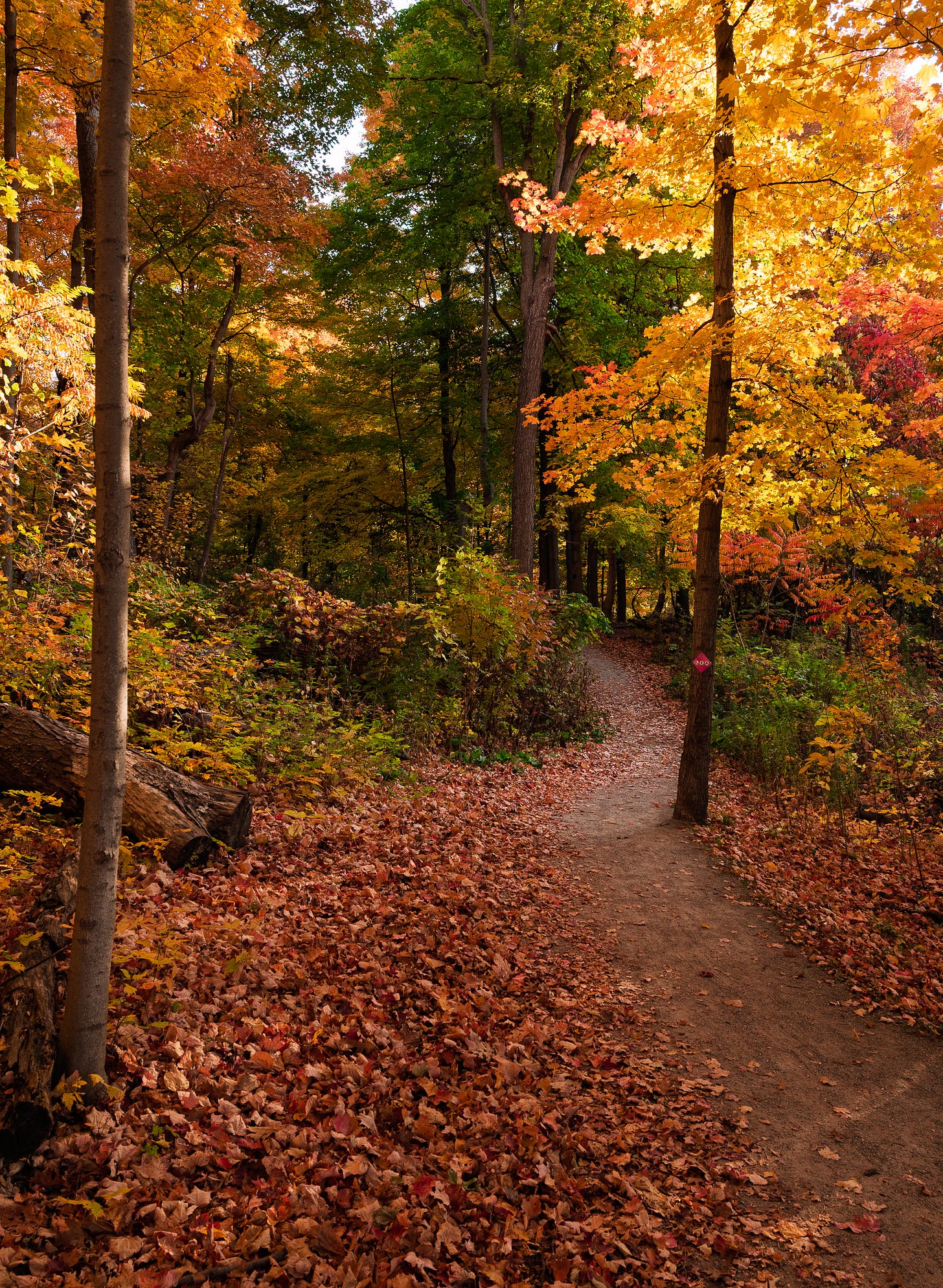 You may notice I post a number of pictures from Bronte Provincial Park. It is such a jewel on the border of Oakville and Burlington. The Trillium Trail is a 1km trail and one of the best places to see spring wild flowers and get a top-down view of the valley floor. The trail is not very dense, which allows the morning sun to shine through and light up the fall trees.