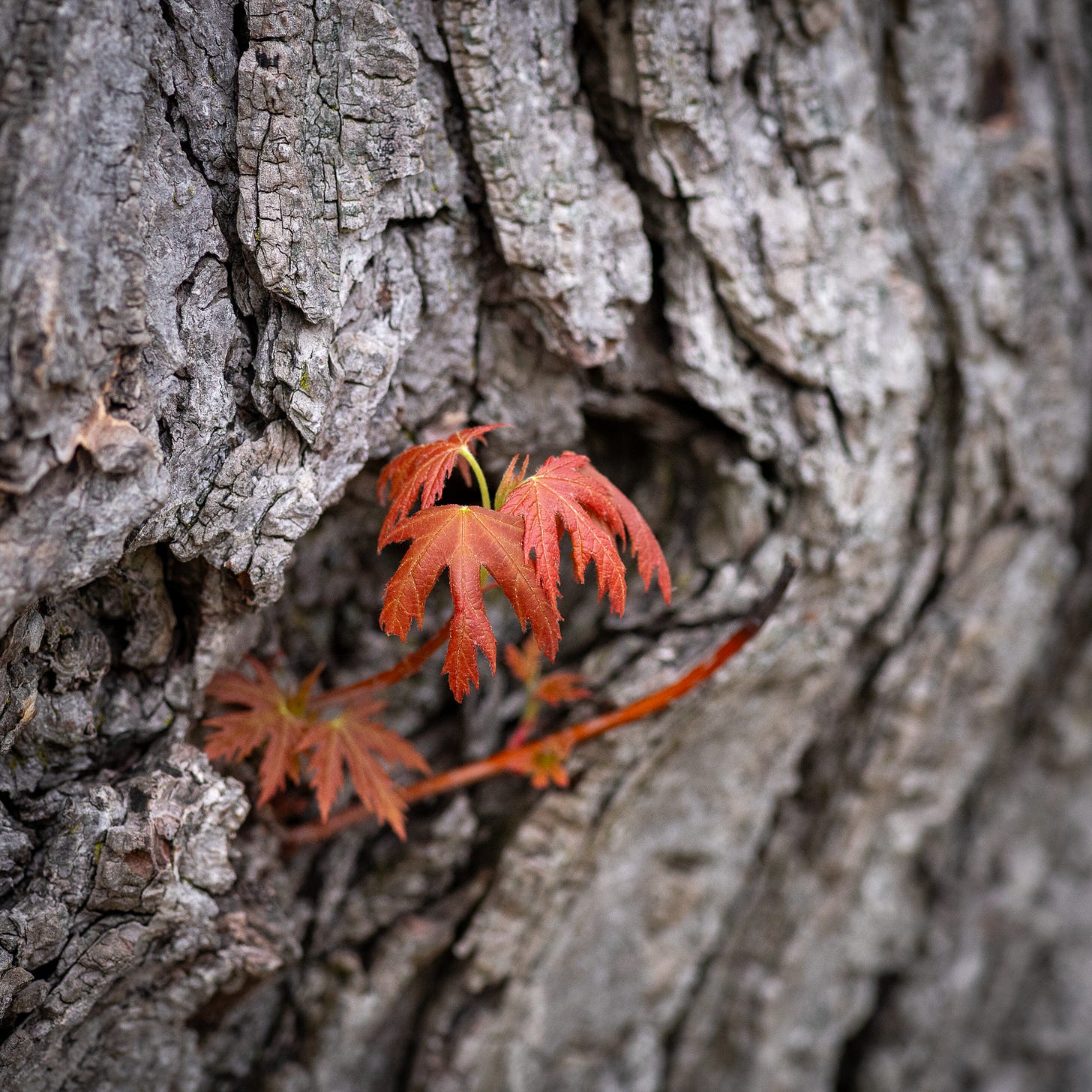 Looking closer at the backyard trees, you never know what you will find. This new growth out of a missing branch in this old growth tree. Nature finds a way.